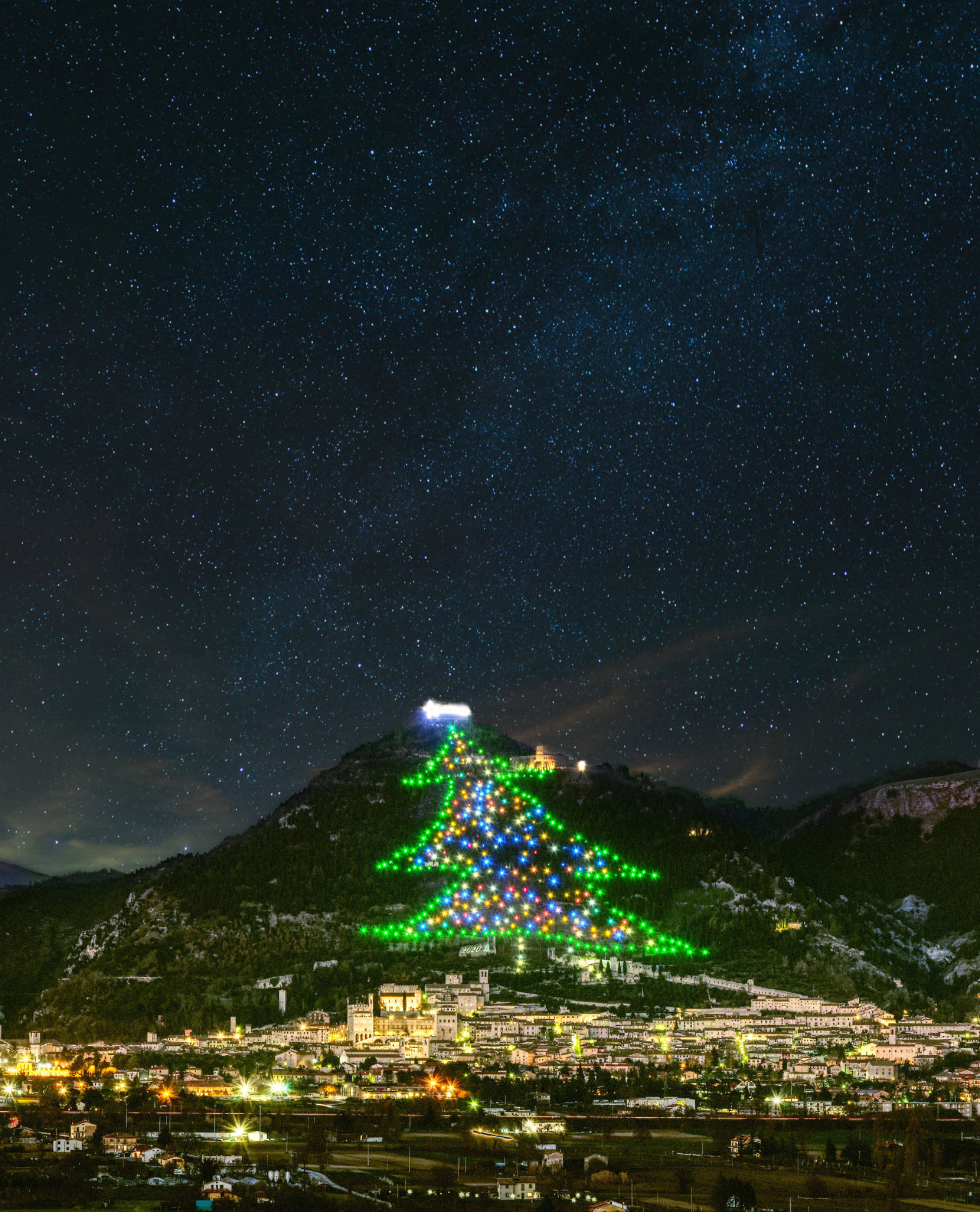 Con oltre 750 metri d’altezza e una base di 450 metri, per una superficie di circa 130.000 m², è il simbolo che rende Gubbio unica: l’Albero di Natale più grande del mondo. Ogni anno, ad inizio dicembre, la città si riunisce per la cerimonia d’accensione.